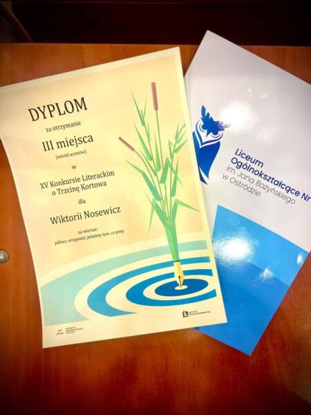 Wiktoria Nosewicz, uczennica kl. 3f po raz trzeci stanęła na podium w Konkursie Poetyckim Trzcina Kortowa.